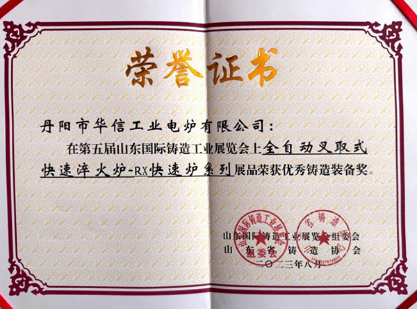 优秀铸造装备奖荣誉证书