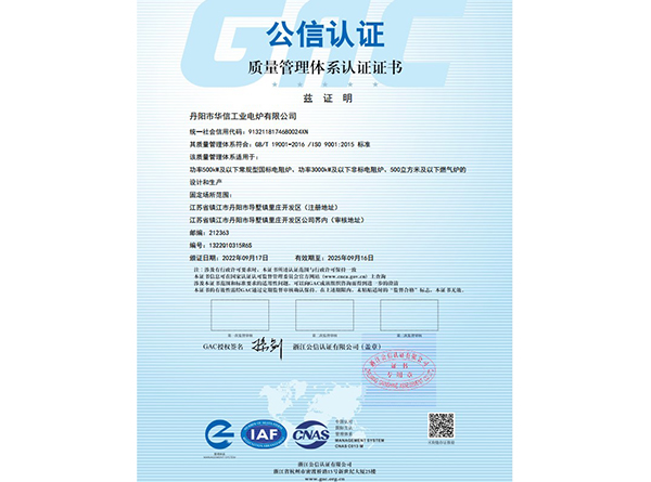 质量管理体系认证证书